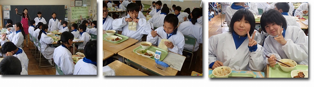 今日のメニューは、ごはん、すだちチキン、骨丸ごとおかか和え、さわにわんでした。今日は、今年度最後の給食でした。6年生にとっては小学校生活最後の給食で、クラスみんなで円になって食べており、とても楽しそうでした!(^^)! 給食をたく...