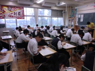 天候が雨になりましたが、生徒は、真剣にテストに取り組んでいます。