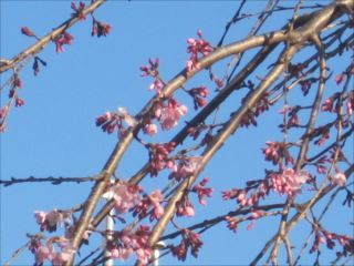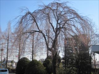 本校体育館脇にある、「しだれ桜」が、開花しています。