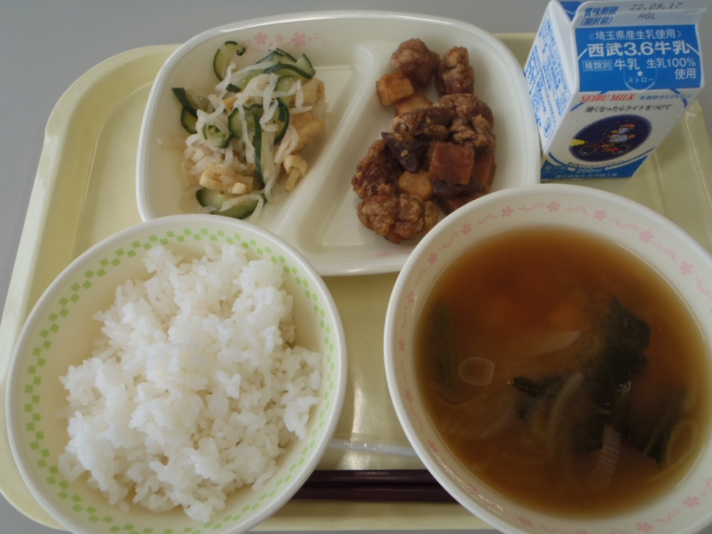 ⭐︎牛乳 ⭐︎秋の香りご飯 ⭐︎さんまの蒲焼き ⭐︎塩こんキャベツ ⭐︎なめこ汁 今日は秋の香りご飯です。学校で炊いた茶飯と具を混ぜました。 さつまいもはシルクスイートという品種です。 調理員さんがおいしい秋の香りご飯を作ってくれました 次回の炊飯...