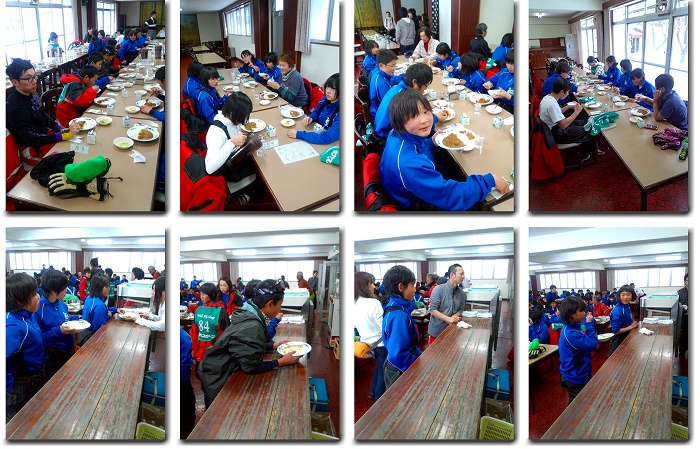 2日めの昼食は3室習の班ごとです。イスストラクターさんと一緒に食べます。