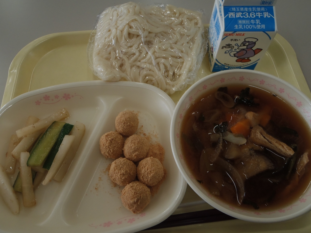 今日の給食は、もやしラーメン、手作り豆腐ドーナツ、チョレギ風サラダでした。 チョレギ風サラダは、ちりめんじゃこやのりが良いアクセントとなっていました。豆腐ドーナツも、中はサクサク、外はカリカリでとてもおいしかったです(^^)