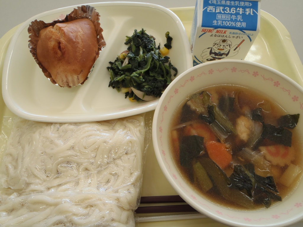 今日の給食は、もやしラーメン、手作り豆腐ドーナツ、チョレギ風サラダでした。 チョレギ風サラダは、ちりめんじゃこやのりが良いアクセントとなっていました。豆腐ドーナツも、中はサクサク、外はカリカリでとてもおいしかったです(^^)