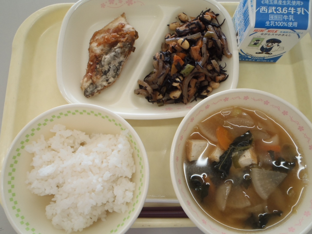 ⭐︎牛乳 ⭐︎ご飯 ⭐︎チキンチキンごぼう ⭐︎和風サラダ ⭐︎なめこ汁 今日はチキンチキンごぼうです。山口県では大人気の給食メニューだそうです。 鶏肉とごぼうをカラリと揚げて甘辛いタレをからめた、ご飯がすすむおかずです。 調理員さんが13キロのご...