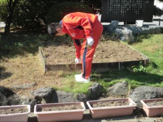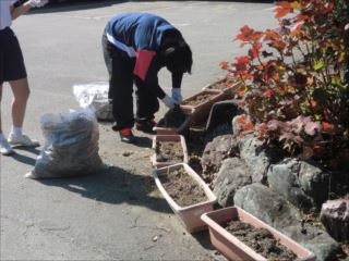 本日(28日)は、生徒がみんなで枯れた花を取って植え替えの準備を