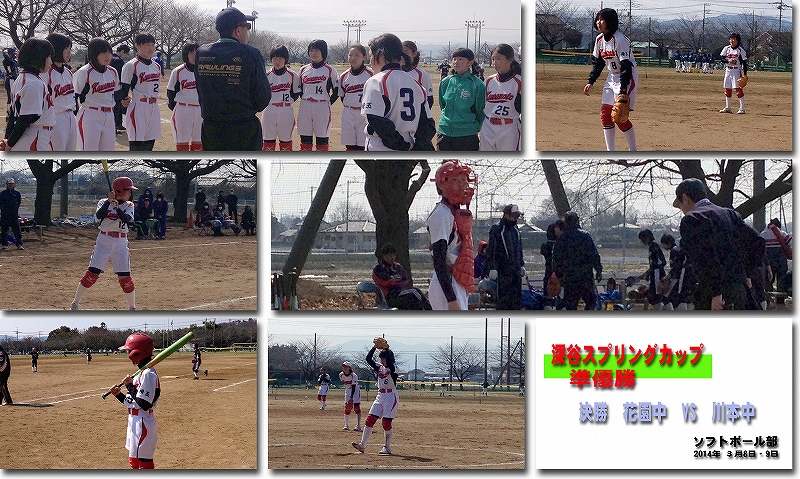 3月8日・9日の二日間にわたって深谷スプリングカップが岡部で行われました。1日目は全勝で予選を突破した川本中ソフトボール部でしたが、準決勝を4-0で幡羅中を撃破したものの、決勝は残念ながら花園中に惜敗してしまいました。