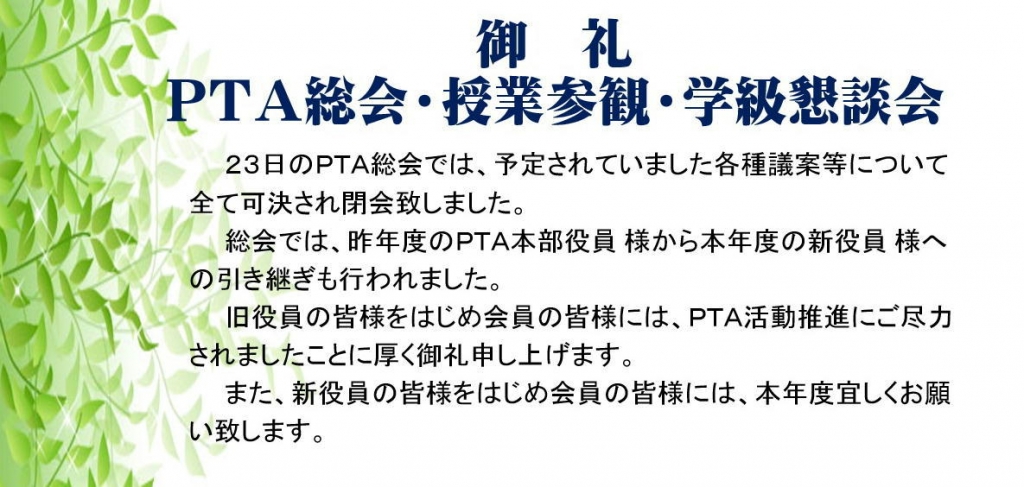 御礼:PTA総会・授業参観等について