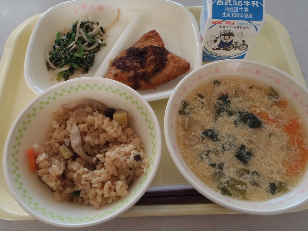 牛乳 秋の香りご飯 アジフライ