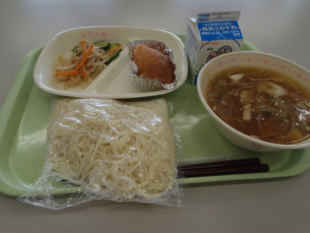 今日の給食は、もやしラーメン、手作り豆腐ドーナツ、チョレギ風サラダでした。 チョレギ風サラダは、ちりめんじゃこやのりが良いアクセントとなっていました。豆腐ドーナツも、中はサクサク、外はカリカリでとてもおいしかったです(^^)