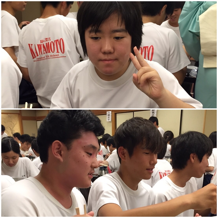 今年度の最初の給食です。入学や進級をお祝いしてお赤飯が出ました。 赤飯・肉じゃが・厚焼き卵・磯の香あえ・牛乳