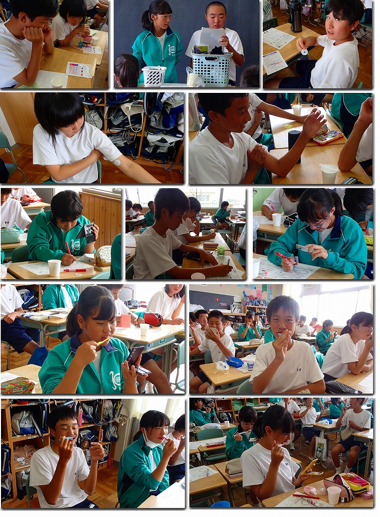 本日の2時間目、2年3組で歯と口の健康についての授業を行いました。RDテストやカラーテストを真剣に取り組んでいました。これからも、よりよい歯と口の健康を目指していきましょうね! ※お礼等を言ってくれたみなさん、ありがとうございました。