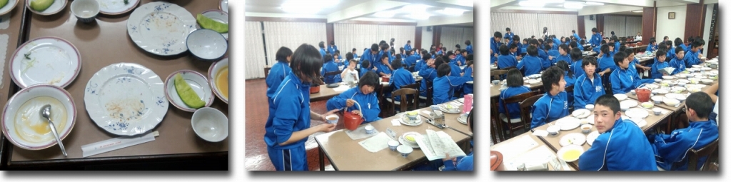 今年度の最初の給食です。入学や進級をお祝いしてお赤飯が出ました。 赤飯・肉じゃが・厚焼き卵・磯の香あえ・牛乳