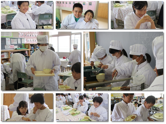 今日のメニューは、ごはん、すだちチキン、骨丸ごとおかか和え、さわにわんでした。今日は、今年度最後の給食でした。6年生にとっては小学校生活最後の給食で、クラスみんなで円になって食べており、とても楽しそうでした!(^^)! 給食をたく...
