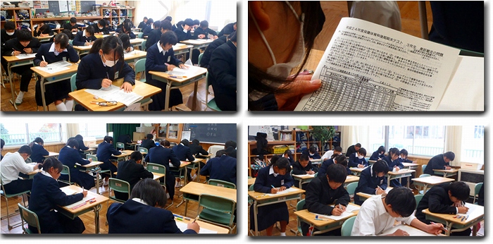上段は、3年1組の期末テストに取り組んでいる様子。