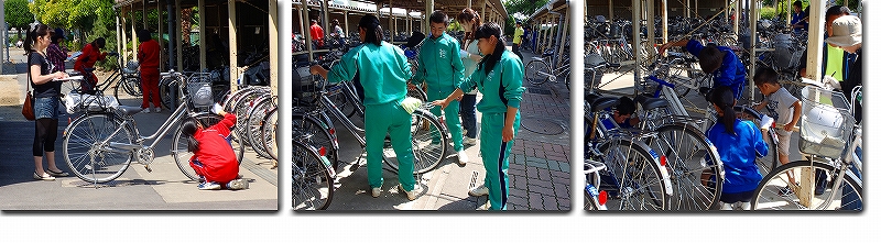 除草作業と同時に、生活安全委員・生徒指導部の皆さんによる自転車点検が行われました。