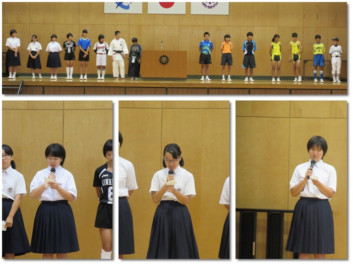 今朝は新人戦に向けて壮行会が行われました。1.2年生のみなさん、頑張りましょう!