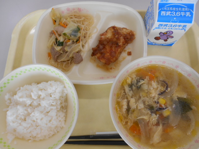 今日の給食は、ごはん、ヤンニョムチキン、チョレギ風サラダ、サルグクスでした。 サルグクスとは韓国のスープで、さっぱりとした優しい味のほっこりスープでした。ヤンニョムチキンはおいしい甘辛味で、ご飯がよく進みました!(^^)!チョレギサ...