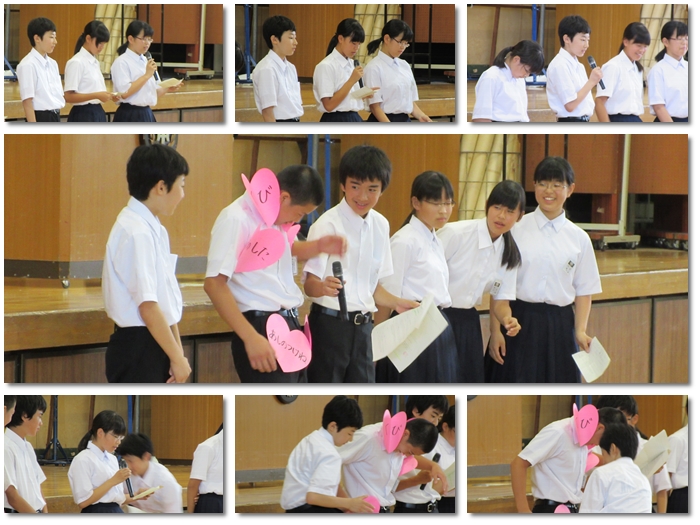 終業式後の連絡で、保健委員2年生の皆さんから夏休み中のお願いについて発表がありました。発表の中には、熱中症になった場合、冷やす身体の部位についての説明も行われました。夏休み、何よりケガや病気がないようにしてください。