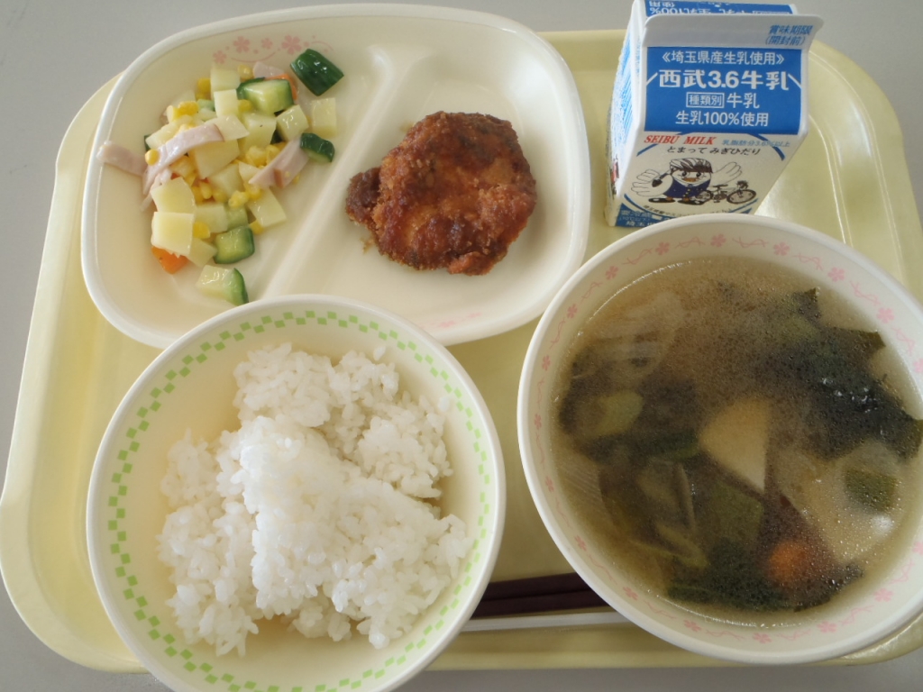 ⭐︎牛乳 ⭐︎タンメン ⭐︎チーズ入りいももち ⭐︎大根のナムル ⭐︎ヨーグルト 今日はチーズ入りいももちです。あら砕きのじゃがいも、砂糖、塩、牛乳、片栗粉、チーズを混ぜて400コを小判型にして揚げています。 甘辛いタレをかけて食べましたが、もちも...