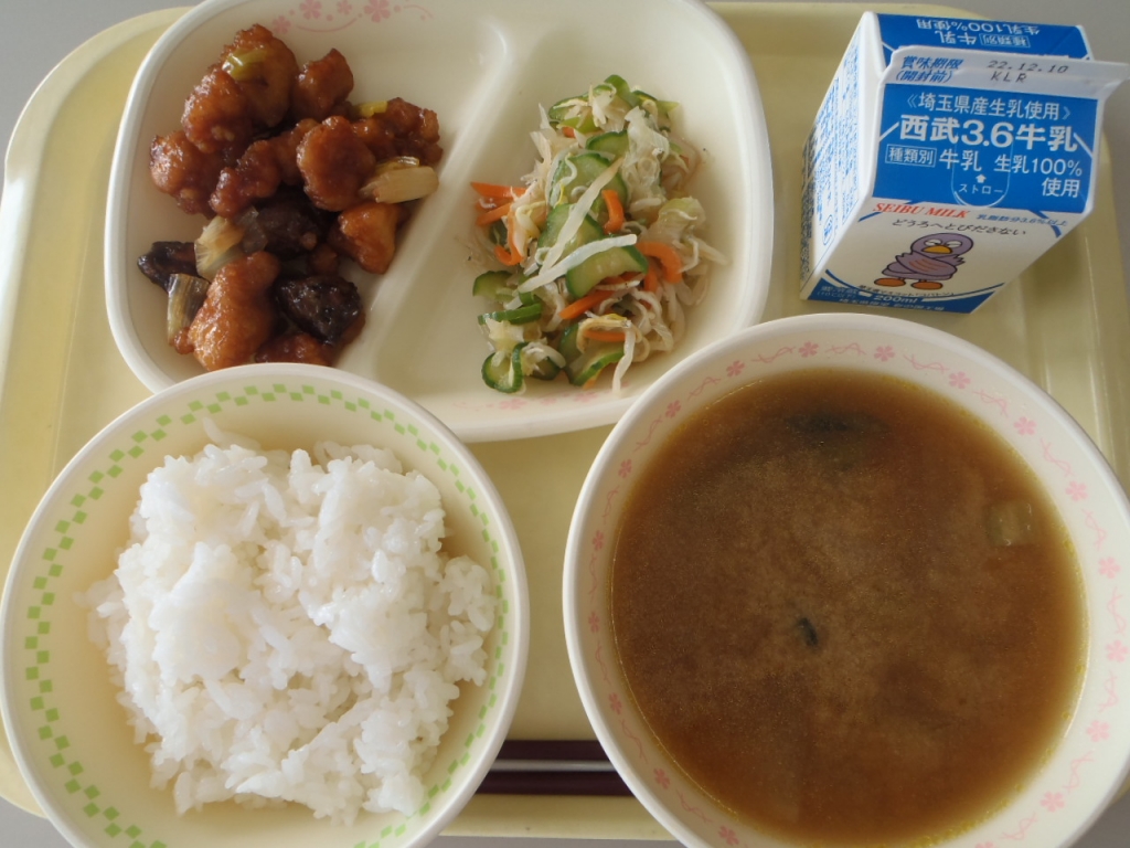今日の給食は、ご飯、三食そぼろ、ししゃもフリッター、キム豚汁でした。 キム豚汁は、キムチのピリ辛の味がアクセントとなっており、具だくさんでとてもおいしかったです!!