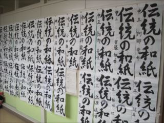 生徒の書いた書き初めが、各階の廊下に掲示されました。