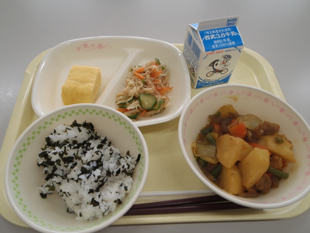 ⭐︎牛乳 ⭐︎ご飯 ⭐︎ホルモン揚げ ⭐︎上州サラダ ⭐︎こしね汁 今日は群馬県富岡市と深谷市の友好関係を記念した給食、「お富ちゃん給食」です。 富岡市には、世界遺産の富岡製糸場があります。渋沢栄一翁も富岡製糸場の設立に貢献しました。ホルモン揚げは...