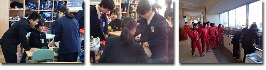今朝はフッ素洗口日でした。しっかりとできたようです。 ※明日からロードレース前健康観察を実施します。家の人の印が必要となります。ご協力よろしくお願いいたします。 |