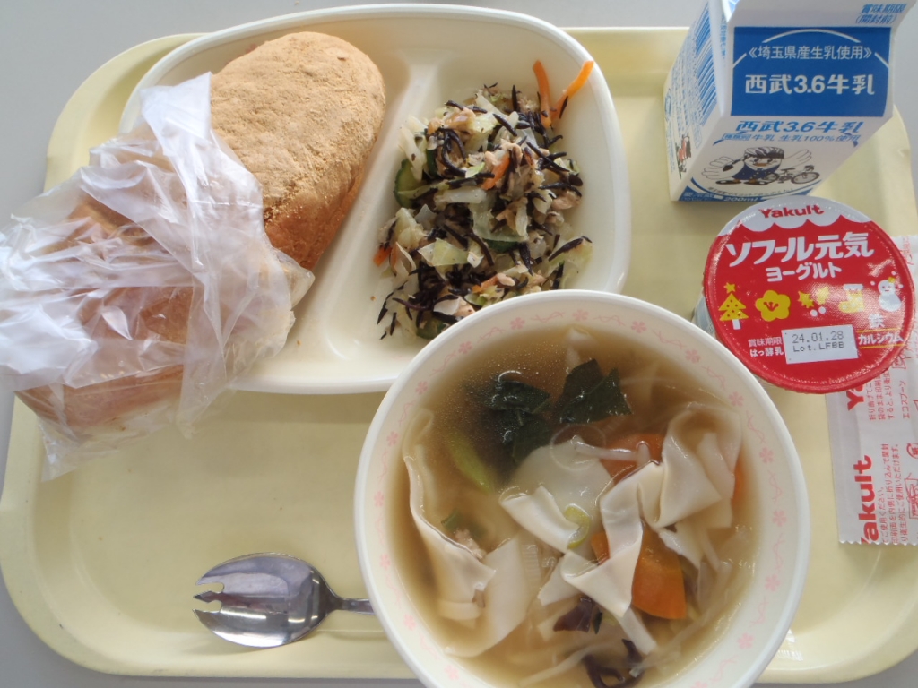 ⭐︎牛乳・ミルメーク ⭐︎黒パン ⭐︎ステンドグラスキッシュ風 ⭐︎ふっかちゃん野菜のごまごまサラダ ⭐︎煮ぼうとう 今日は渋沢栄一給食です。栄一翁語らいの日という事で、給食の時間には、校長先生から栄一翁についての放送がありました。 その後に各ク...