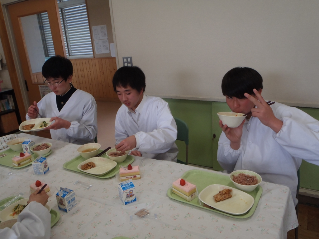 最後の給食、3年生の皆さんとても楽しそうに和気あいあいと食べていました!
