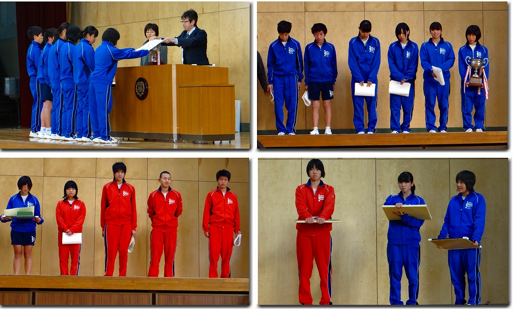 本日6時間目前半は表彰集会でした。秋の新人戦や駅伝などの表彰がありました。