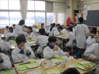 ★給食の時間に「深谷市歌」を流しました。