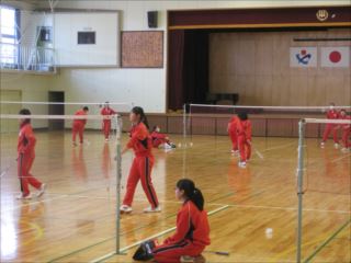 現在、男女に分かれて男子はソフトボール、女子はバドミントンを行っています。