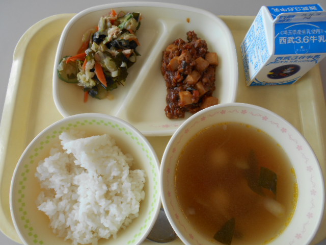 ⭐︎牛乳 ⭐︎小江戸カレー ⭐︎大豆のカリカリ揚げ ⭐︎ハムと大根のサラダ 今日の北小で炊いたご飯は新米です。みずみずしく、モチモチした食感でした。 小江戸カレーは、川越市の特産物でもあるさつまいもが入ったカレーです。 川越市は、古い街並みや武家屋...