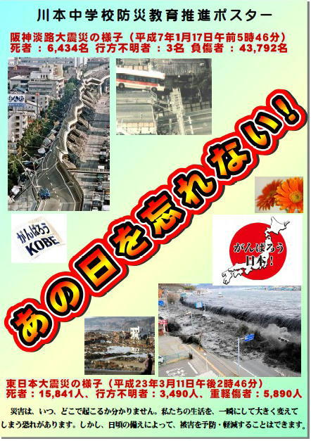川本中防災教育ポスター作成!~あの日を忘れない~