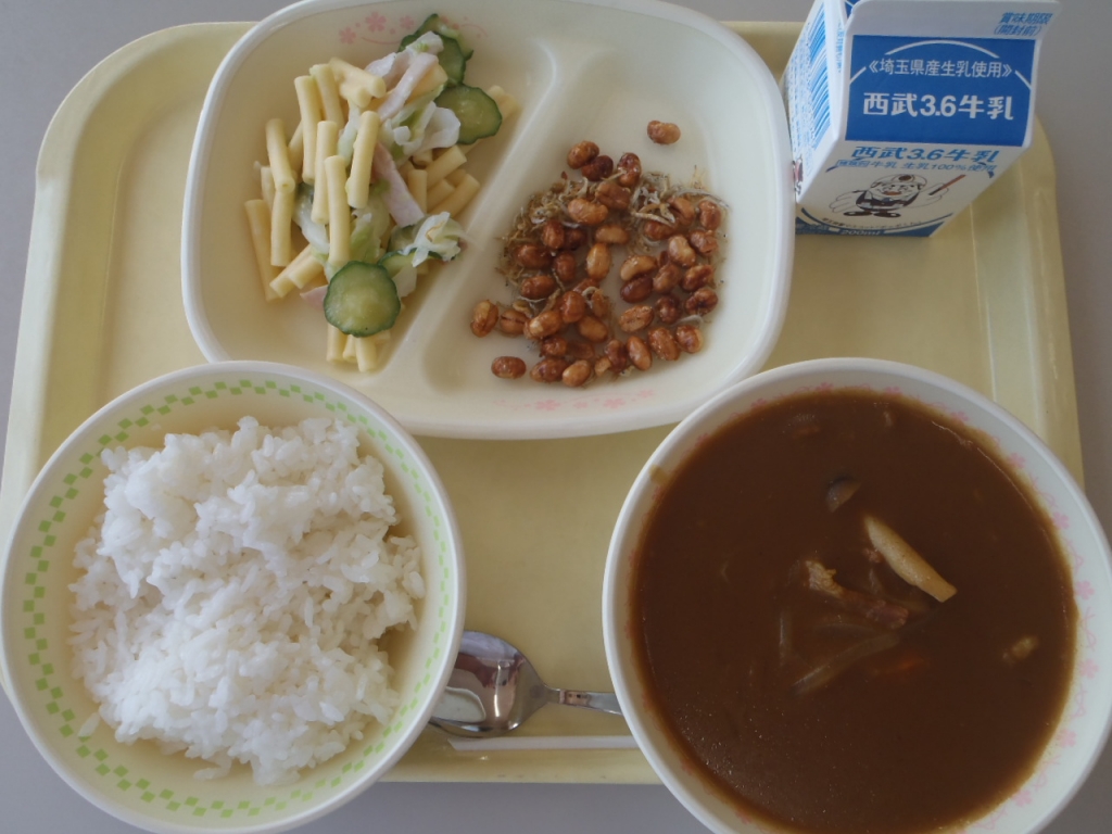 ⭐︎牛乳 ⭐︎きつねうどん ⭐︎マーラーカオ ⭐︎小松菜とじゃこの炒り煮