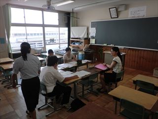 川本南北小学校の先生方と川本中の先生方が、川本北小学校に集まり、