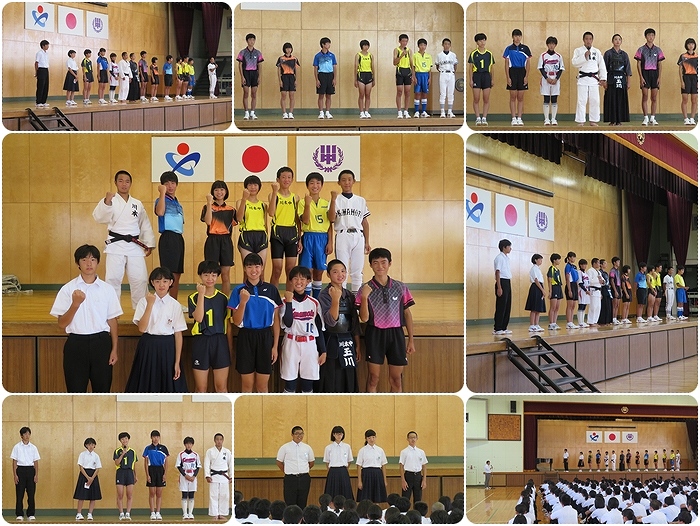 18日の全校朝会で新人戦の壮行会が行われました。3年生が引退し、新部長から決意の言葉を聞くことができました。今年の新人戦は10月4日、5日です。頑張れ川中!