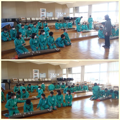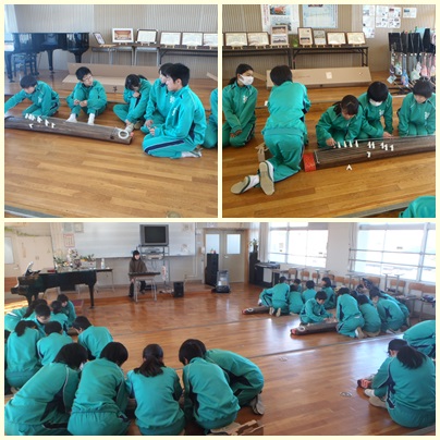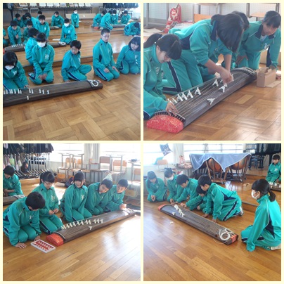今、1年の音楽では、「琴」を使った授業をしています。音合わせから授業にのぞんでいます。