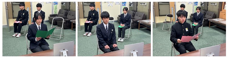 2学期の終業式は体育館がエアコン設置工事中のため、オンラインで実施しました。生徒が受賞した多くの賞状や、あすなろ賞、きらめき賞の表彰を行い、各学年の代表生徒が2学期を振り返って頑張ったことや今後の抱負などを発表しました。充実した冬休みを過ごして、3学期も元気に登校してください。