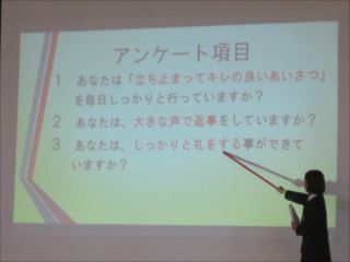 特に、「礼」「返事」「拍手」について、その結果報告とともに、実際に行動も