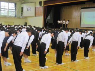 行いました。生徒会本部の皆さんが手本を示し、全校生徒が練習を行いま