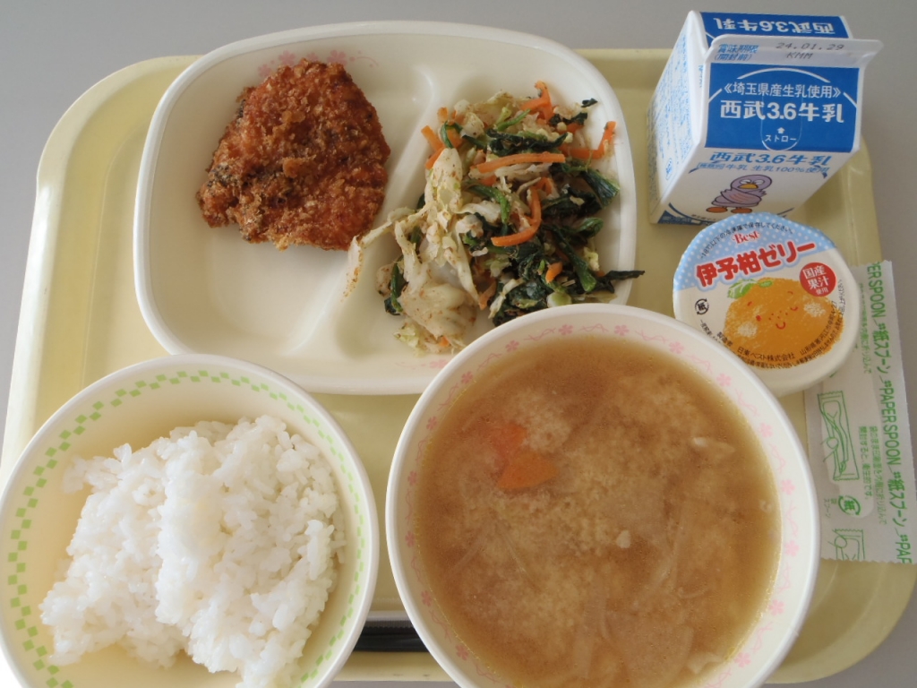 ⭐︎牛乳 ⭐︎ご飯・ふりかけのり ⭐︎さばのしょうが焼き ⭐︎切り干し大根の炒り煮 ⭐︎重忠汁 今日は重忠汁です。 重忠汁は深谷市の郷土料理で、重忠公が幼いころに、うぐいすの瀬というところで、石投げをして遊んでいたことから、白玉団子を石に見立てています。