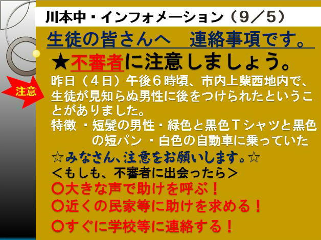 不審者情報がはいりました。(9/5)