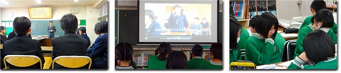 私立単願受験者が、見事全員合格しました。おめでとうございます。会議室に集まり、校長先生からメッセージが送られました。校長先生を始め、先生方は本当に嬉しいです。そして大事なことは、これからの生活。高校に向けて準備をしっかりすること。残りの中学校生活を一生懸命過ごすこと。そして、これから受検を控えているクラスの仲間を支えること。ゴールではなく、今からがスタートです。真ん中の写真は、公立高校受検者で面接試験がある生徒を集めビデオを見せている様子です。さらに右の写真は、資料が配られそれを熟読している様子ですが、目がとても真剣でした。