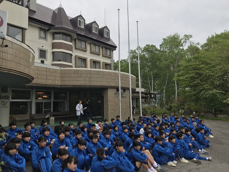 朝の集いの様子です。体調不良の生徒はいないようで、全員元気に参加しています。