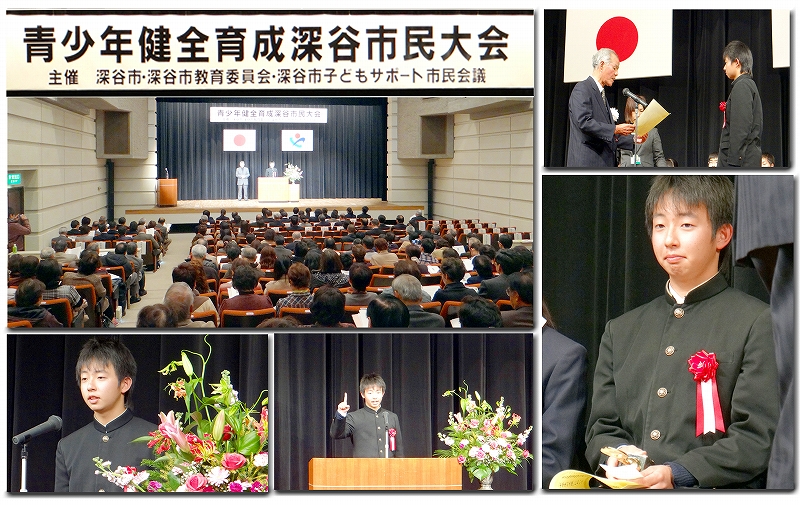 満員の深谷市民文化会館のホールに、本校3年2組の三戸君の声が響きました。