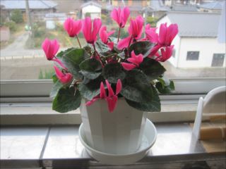 1年生の廊下には、その「シクラメン」が、綺麗に咲いています。