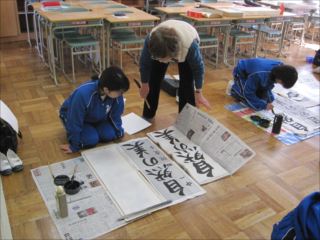 ◆学校応援団の皆様による、書写指導が始まりました。