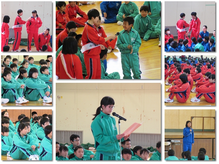 今日の1.2時間目に新入生歓迎会が行われました。1年生は初めて「あらかわっ子」を歌い、全校でレクを行いました。1年生の皆さん、早く川中に慣れてくださいね。