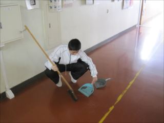 本日は、柔道部のみなさんの担当です。丁寧に掃除をしてくれています。